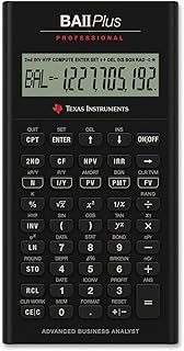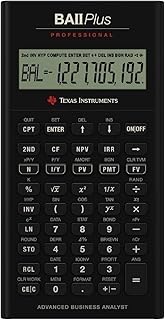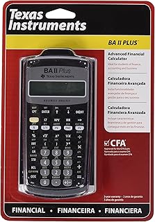 BA II Plus™ calculator specifications Built-in functionality Solves time-value-of-money calculations such as annuities, mortgages, leases, savings and more Generates amortization schedules Performs cash-flow analysis for up to 24 uneven cash flows with up to four-digit frequencies; computes NPV and IRR Texas Instruments BA II Plus Professional Financial Calculator Brand: Texas Instruments 4,664 ratings | 77 answered questions $5300 FREE Returns About this item Solves time-value-of-money calculations such as annuities, mortgages, leases, savings, and more Performs cash-flow analysis for up to 32 uneven cash flows with up to 4-digit frequencies