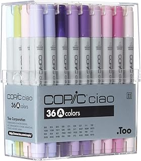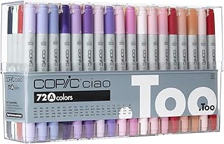 COPIC Ciao Marker Sets markers feature the same brilliant ink and double-ended style as Sketch markers, but at a more economical size. Available in sets of 12, 24, 36 and 72 markers in a range of color collections, Ciao markers are the ideal starter sets for beginner artists, or for experienced illustrators looking to move up to a higher grade. Copic 22075713 Ciao Set of 12 Witches Visit the Copic Store 32 ratings £4187 (£3.49 / count) About this item Acrylic case with 12 Copic Ciao felts. Rechargeable alcohol based felt with double tip (scalpel and brush). The colours can be mixed and overlay. Contains: 100-BV08-C3 E00-E21 Et31 R22 R85-V06 V12 Y08 and YR16 › See more product details