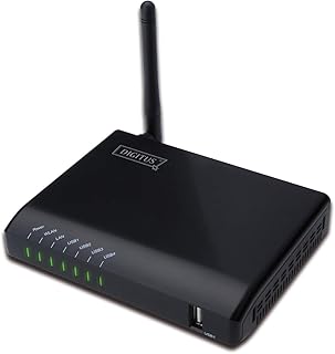 DIGITUS Serveur réseau USB multifonction, 4 ports, Hub USB réseau, NAS, Serveur d'impression USB 2.0, RJ45, LAN sans fil 11n, Noir