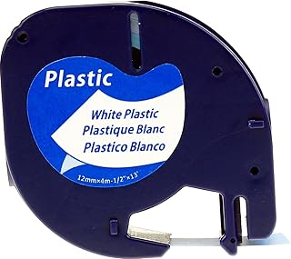 Ruban d’impression pour Dymo LetraTag, noir sur blanc, 12 mm de large x 4 m de long, plastique laminé, compatible avec Dymo 91221 / S0721660 1 pièce
