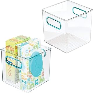 mDesign rangement chambre enfant en plastique (lot de 2) – grand panier de rangement avec poignées pratiques – bac de rangement pour jouets, couches, etc. – transparent/bleu clair