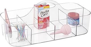 mDesign Boîte de rangement en plastique pour table à langer – panier rangement pour produits soins bébé, lotions et thermomètres – 11 compartiments – bac rangement en plastique résistant – transparent