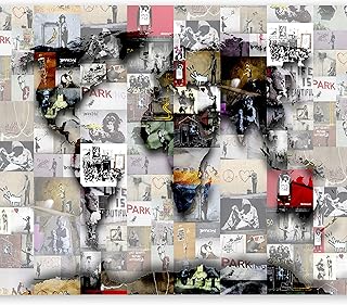 murando Papier peint intissé 350x256 cm Décoration Murale XXL Poster Tableaux Muraux Tapisserie Photo Trompe l'oeil Carte du Monde Banksy Abstraction Continent Monde Graffiti k-C-0055-a-b
