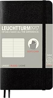 LEUCHTTURM1917 (306017) Carnet Pocket (A6), couverture souple, 123 pages numérotées, ligné, noir