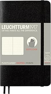 LEUCHTTURM1917 (311346) Carnet Pocket (A6), couverture souple, 123 pages numérotées, pointillés, noir