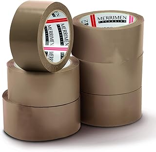 Merrimen Lot de 6 rouleaux de ruban adhésif d'emballage marron 48 mm x 66 m pour colis et boîtes Ce lot de 6 rouleaux de ruban adhésif d'emballage robuste marron fournit un joint solide