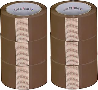 Alaskaprint 6 Rouleaux de ruban adhésif 48mm x 66m marron Paquet de ruban adhésif Accessoires de bureau ruban d'emballage pour colis et boîtes de bande de conditionnement