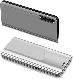 Sweau Coque Huawei P40 Lite Flip en Cuir Folio Miroir Etui Housse Ultra Mince Antichoc Portefeuille Bookstyle Étui Housse en Cuir Case Stand Clear View Etui à Rabat Smart Case,Argent