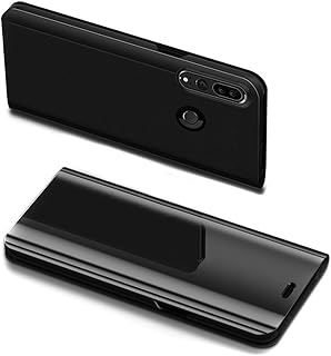Sweau Coque Huawei P40 Lite Flip en Cuir Folio Miroir Etui Housse Ultra Mince Antichoc Portefeuille Bookstyle Étui Housse en Cuir Case Stand Clear View Etui à Rabat Smart Case,Noir