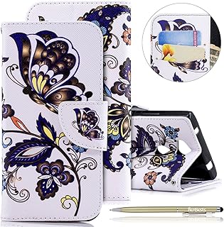 Herbests Compatible avec Samsung Galaxy S8 Housse Luxury Leather de téléphone en Cuir Etui de Protection Motif PU Cuir Portefeuille Folio Housse Case Couverture avec Fonction Stand,Papillon