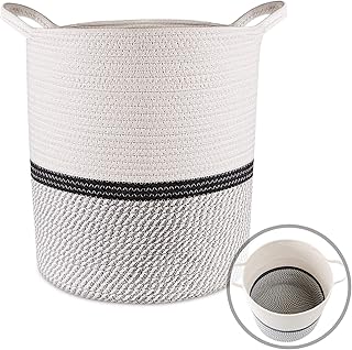 Redmoo Panier de Rangement à Linge en Corde tissée, Grand Organisateur en Coton 40 x 35 x 35 cm, Panier à Linge Pliable avec poignée pour Chambre d'enfants, Salon, Salle de Bain, Jouets