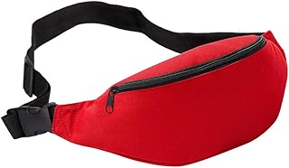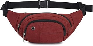 Ceinture de Toile Multifonction 4-Zipper Fanny Pack de Sac de Taille avec Sangle réglable pour Running Fitness Cyclisme Randonnée Voyage Camping Sports (Hot Lip)