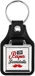 Porte Clés Carré Cuir Métal Un Papa Formidable - Fond Blanc - Idée Cadeau Anniversaire Fêtes des Pères