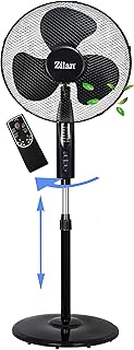 Ventilateur sur pied avec télécommande Ø 41 cm | 50 W | oscillant | fonctionnement silencieux | ventilateur | rotation 180 ° | ventilateur tour | refroidisseur d'air | ventilateur de sol (avant noir)