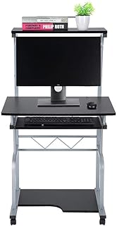 Cikonielf Table d'ordinateur Informatique Bureau Mobile avec roulettes Meuble de Bureau pour Ordinateur pour Bureau Chambre, Noir