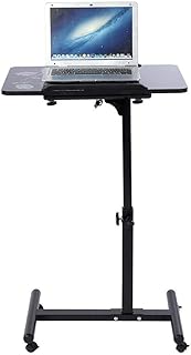 BONTEC Bureau Informatique Table Ordinateur Portable Mobile Réglable en Hauteur, Bureau Debout à roulettes, Poste de Travail Mobile/Chariot de Présentation/Ergonomique Plateforme Supérieure Inclinable