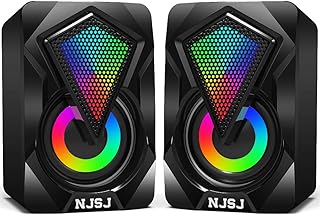 NJSJ Mini Haut parleur PC, RGB Enceinte PC USB 2.0 Système de Stéréo Gaming Haut-parleurs d'Ordinateur Volume Contrôle avec LED Lumière 3,5 mm pour Smartphone Tablette Ordinateur de Bureau