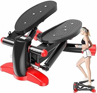 Mini Stepper Fitness 2 en 1 avec Guidon Élastiques et écran Multifonctions, Twister Stepper Up-Down, Swing Stepper 2 marches, pour Débutants Professionnels Maison Bureau, Poids Max 150kg