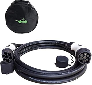 ETE ETMATE EV Câble de Recharge pour véhicule électrique | Type 1 à Type 2 | 16 A/triphasé | Câble de Charge Domestique de 5 m / 17 pi avec étui de Transport Gratuit Compatible avec BMW, Merc